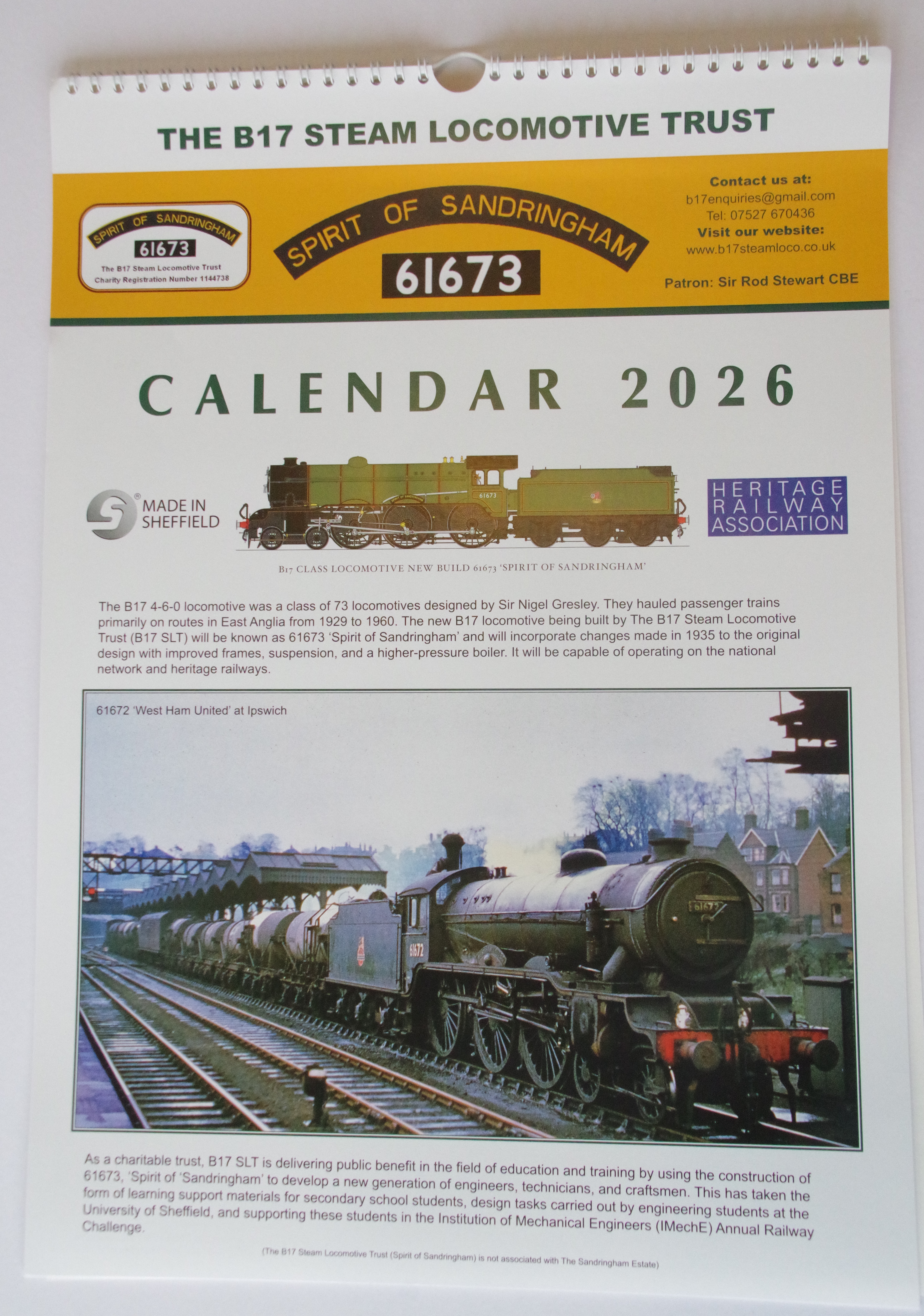 | Our 2026 calendar, building on the success of the previous 6 years' calendars. Each month features an archive picture of a B17, with plenty of space for appointments / notes etc on the bottom half of the page. |