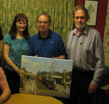 Top transport artist Malcolm Root was guest of March Railway Circle on Friday 24th March. Malcolm entertained his capacity audience by describing how his natural youthful talent to draw was encouraged through his school days. Illustrations of Malcolm's early drawings and paintings were shown. He began a career in printing but after a voluntary redundancy he started a career as a full time painter. A lucky chance gained him commissions to illustrate the front covers of telephone directories. Examples of his distinctive oil paintings were then displayed and discussed at the meeting while Malcolm described how he assembles historical material, sometimes from numerous sources, to ensure that his paintings are always historically correct. His distinctive work now appears in books, posters, calendars and on crockery and jig - saw puzzles.